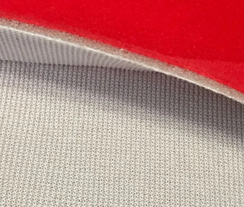 Made from 100% nylon fabric laminated to a loop surface with a polyester foam core and nylon jersey backing.